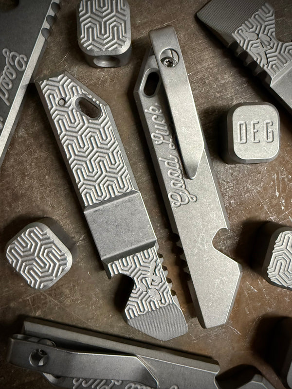Each pry comes with a preinstalled titanium deep carry clip, made by Barclay CNC & Lynch NW exclusively for OEG, with T8 Grade 5 titanium screw.