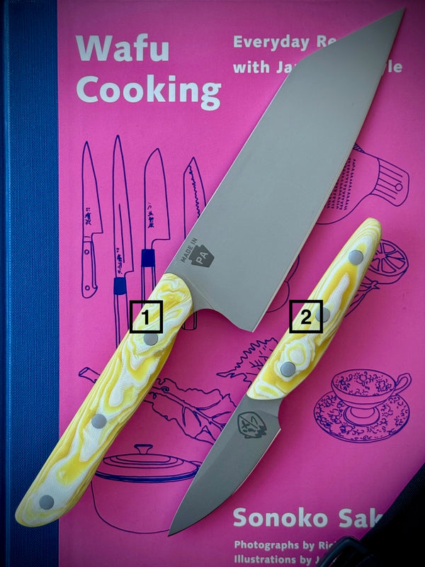 Reach for your new favorites in the kitchen - the OEG Kitchen Knife and Paring Knife!! Grab one or grab both, but there are only one of each!! Completely hand made from start to finish in my shop.